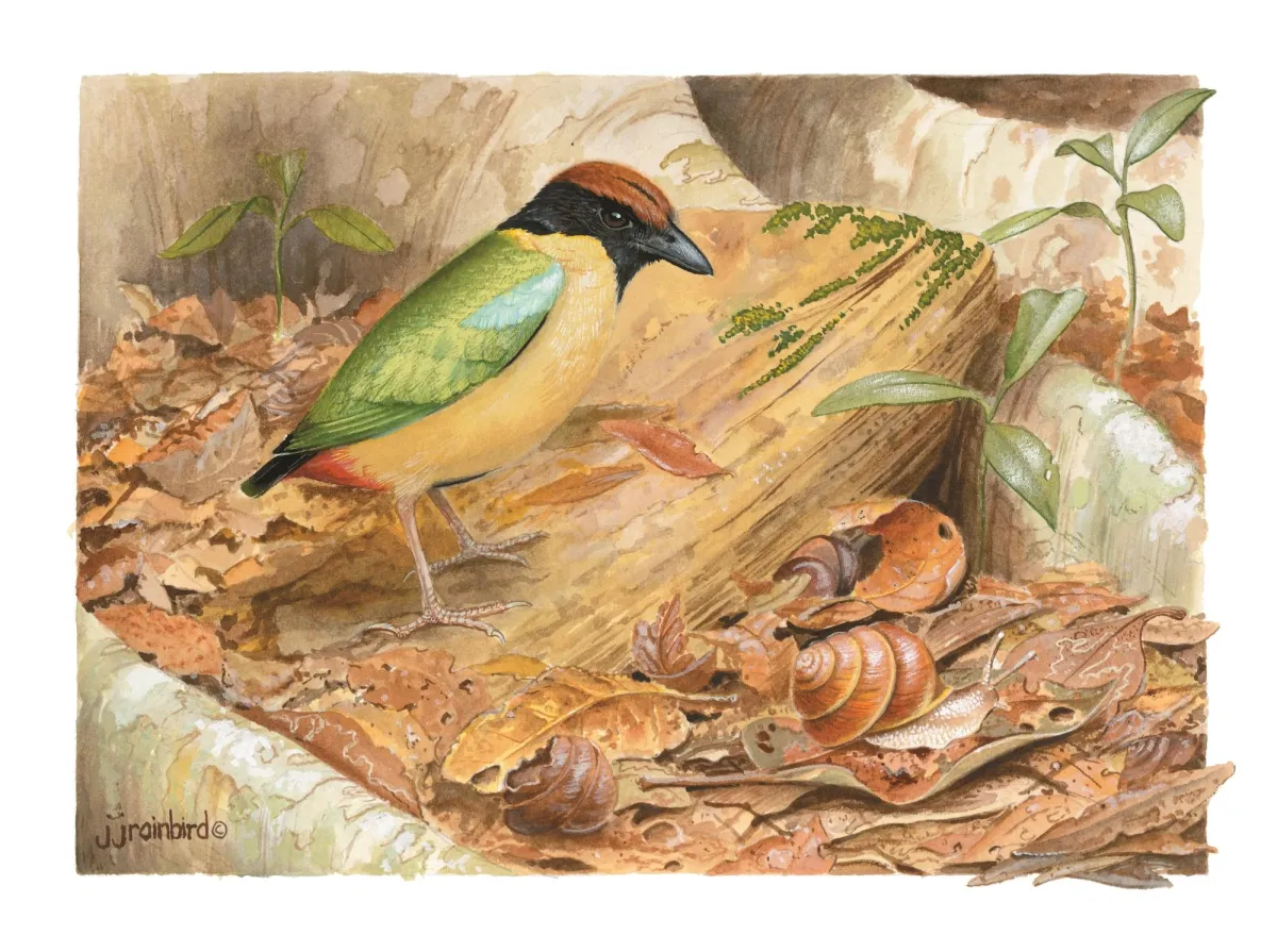 Noisy Pitta (watercolour) Available as prints (30 x 45 cm ) $120