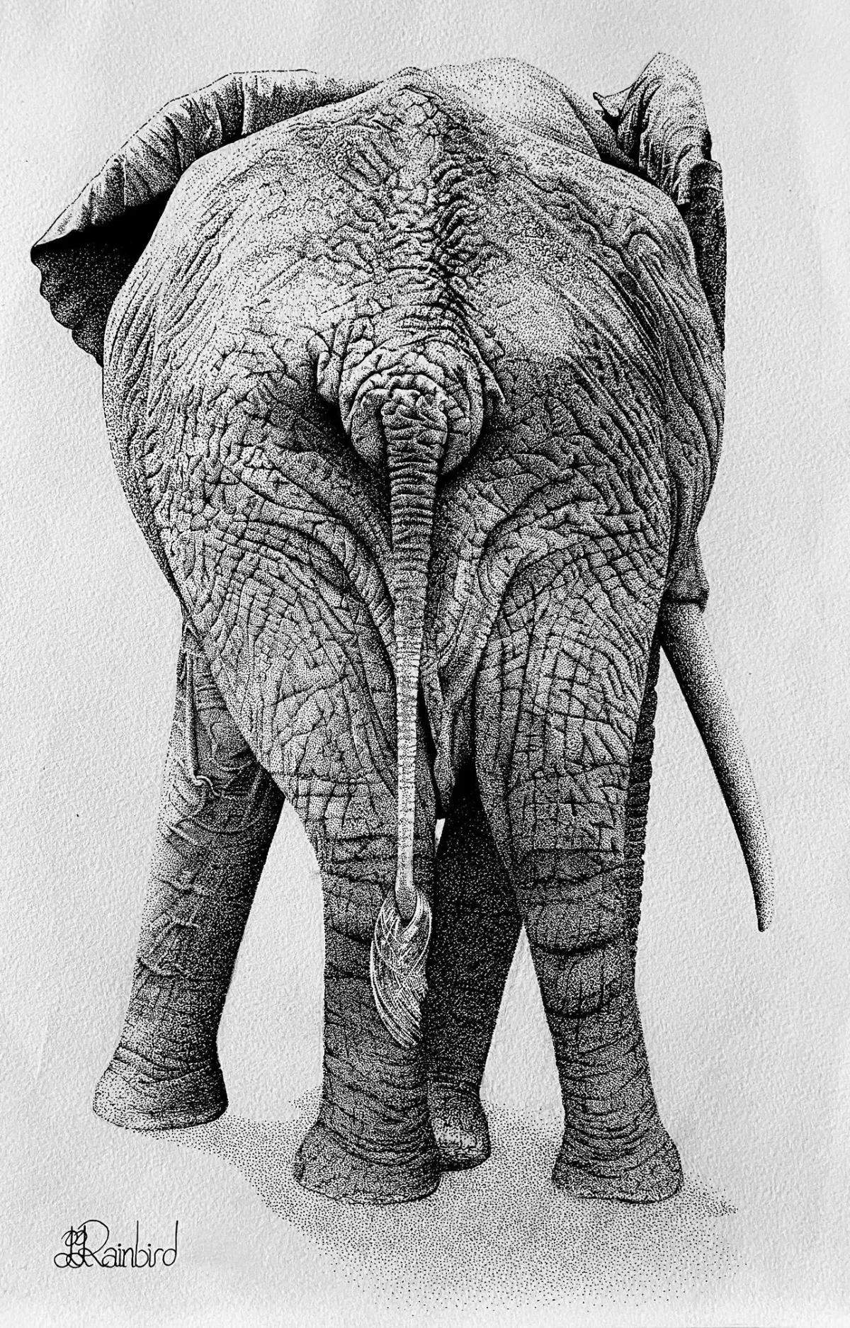 Elephants are intersting no matter what side you are looking at! Pen and Ink Available as prints (40 x 50 cm) $140