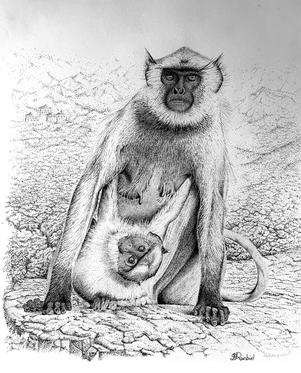 Hanuman langur - Pen and Ink Available as prints (40 x 50 cm) $140
